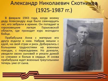 В этом разделе мы хотим поделиться историями людей, принимавших участие в Великой Отечественной войне, родственниках наших сотрудников и студентов.