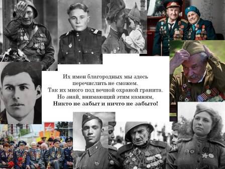 Память о войне – это прежде всего память о людях: о тех, кто воевал, кто не вернулся из боя, кто держал в стране «второй фронт», работая для будущей победы. Теперь время бесстрастно отсчитывает десятилетия уже от конца Великой Отечественной. Для участников эта война стала и памятью о юности, и самым нестирающимся переживанием за целую жизнь – главным из всего, что было. Четыре года между жизнью и смертью, когда каждый день, каждый час мог стать последним, были бесконечно долгими. Не всем посчастливилось дожить до светлого дня Победы — они навсегда остались на полях сражений.