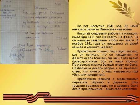 Воспоминания о военном лихолетье – это как бы попытка остановить мгновения в напряжённейший период истории нашей Родины, поэтому так ценны рассказы ветеранов о тех судьбоносных днях.