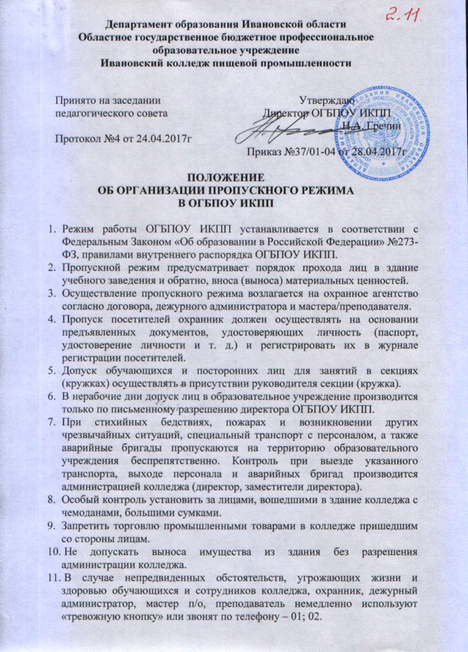 в устав областного государственного бюджетного профессионального образовательного учреждения Ивановского колледжа пищевой промышленности