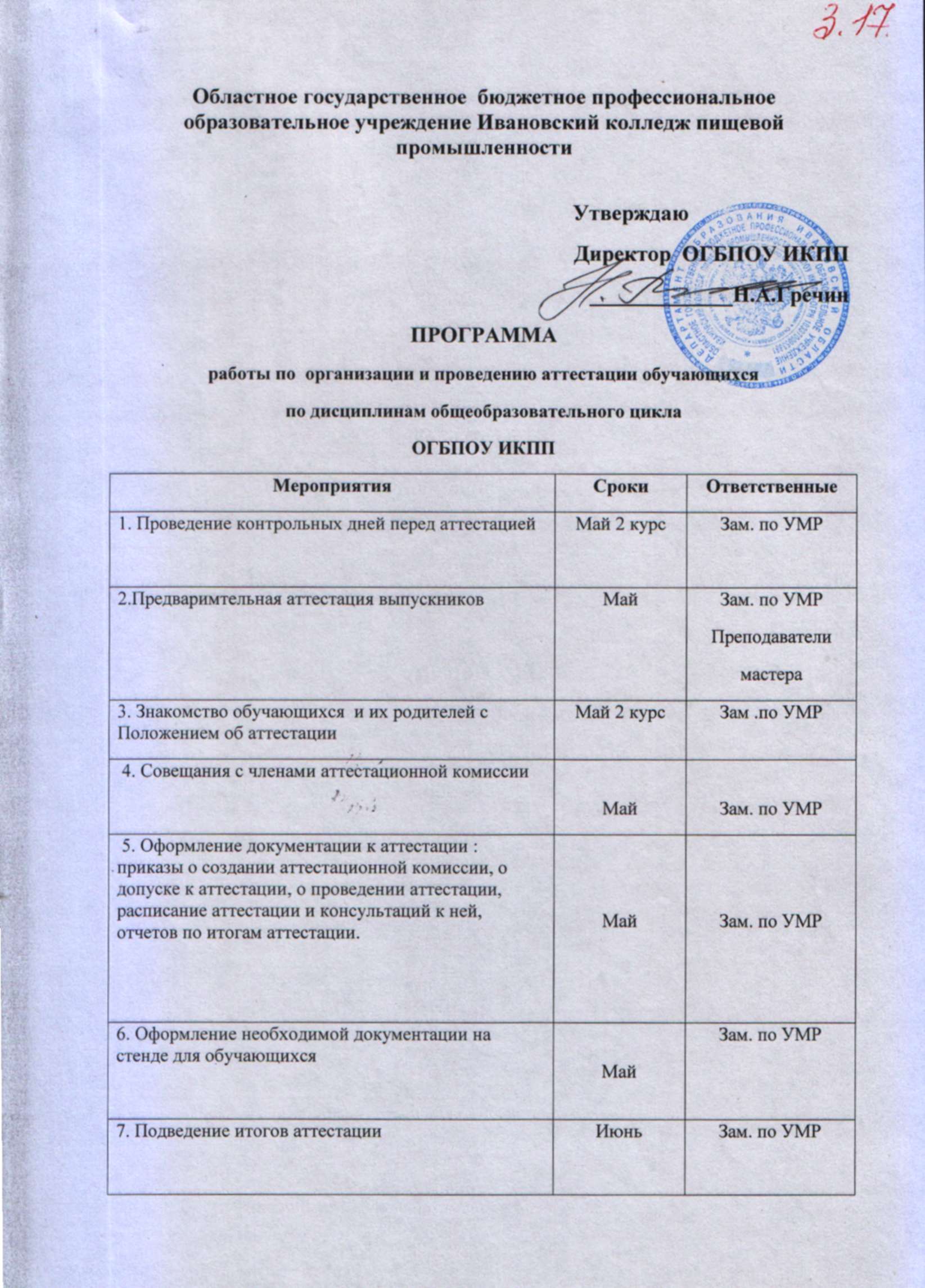 профессионального образовательного учреждения Ивановский колледж пищевой промышленности