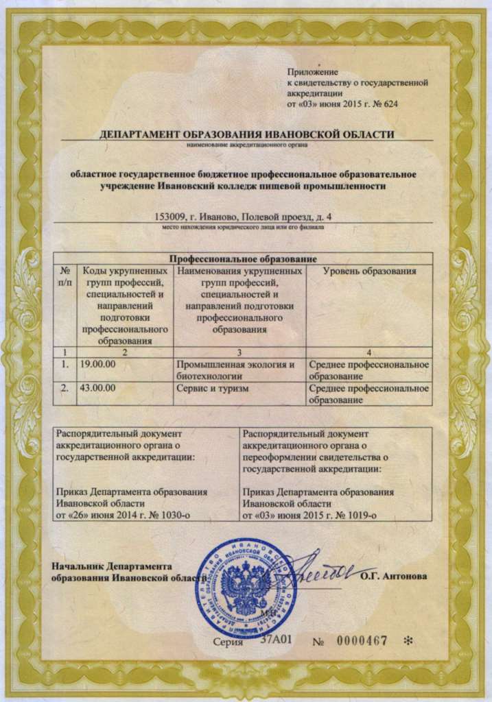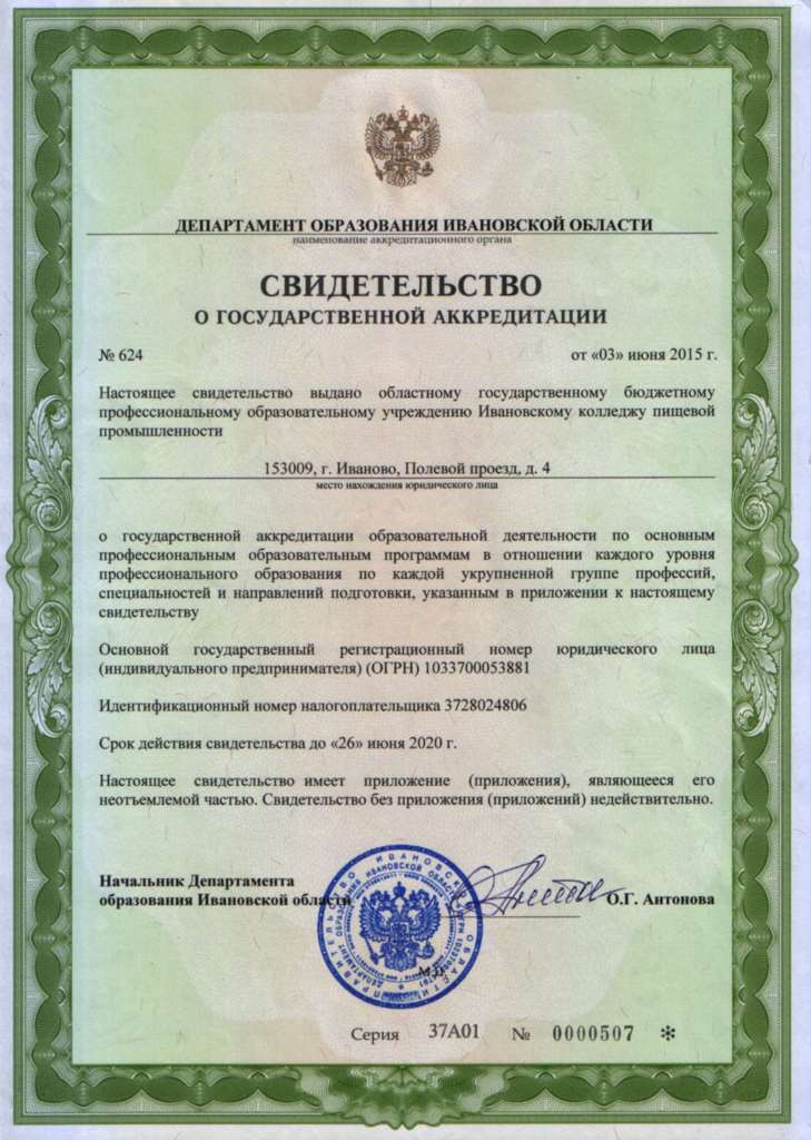 - 1. Свидетельство о государственной аккредитации № 624 от 3 июня 2015 г. (бессрочно).
